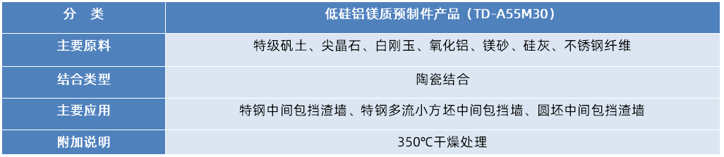 低硅铝镁质预制件产品(TD-A55M30)