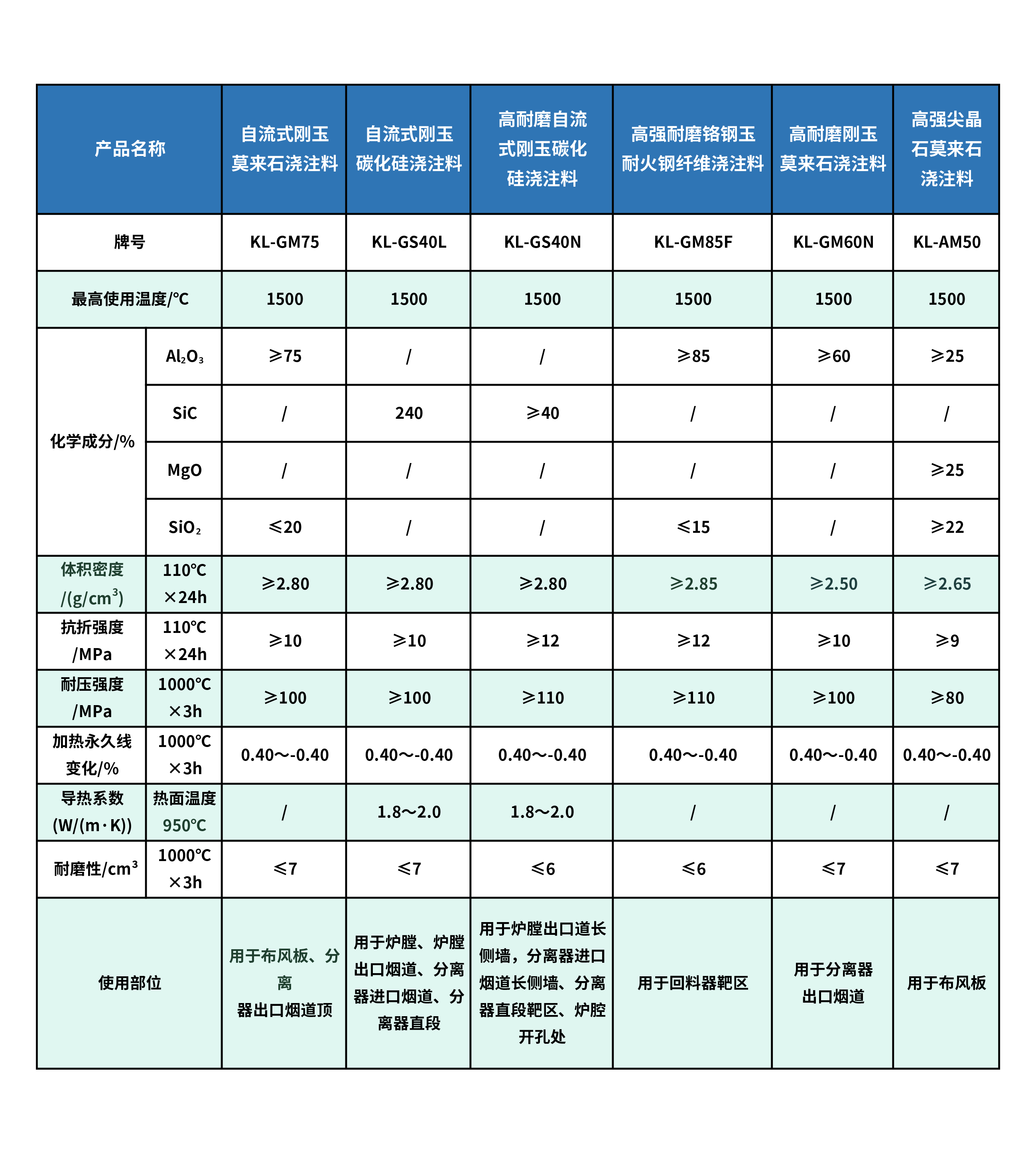 循环流化床用耐磨浇注料系列